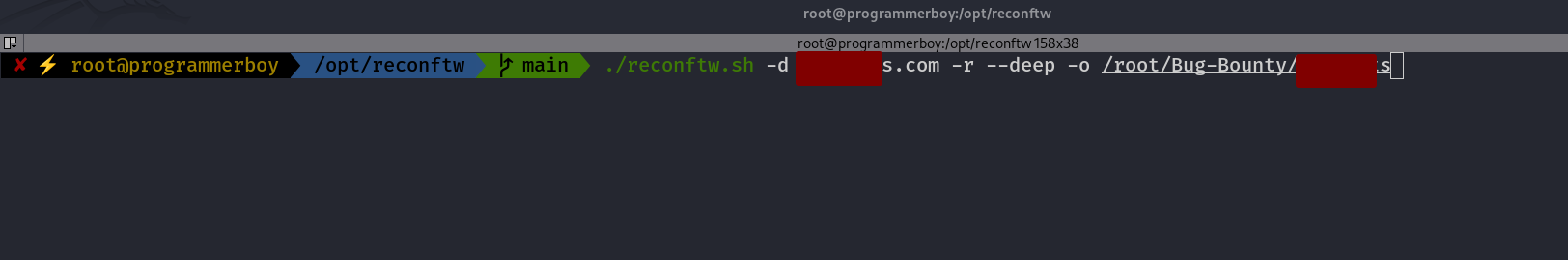 ./reconftw.sh -d domain.com -r --deep -o /root/Bug-Bounty/Domain.com