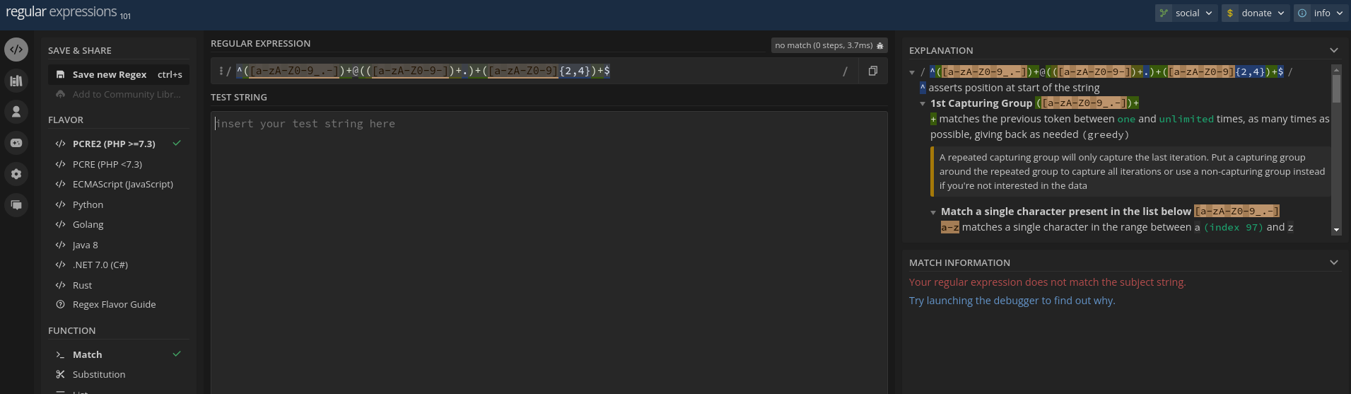 If we want to bypass a regex, first we need to understand it. for that i will be going to use the below link
