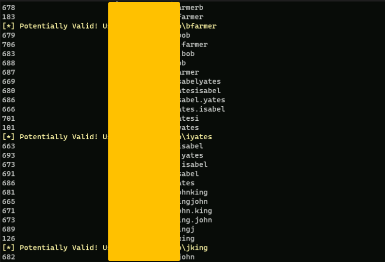 Invoke-UsernameHarvestOWA -ExchHostname mail.redacted.io -Domain redacted.io -UserList .\Desktop\possible.txt -OutFile .\Desktop\valid.txt